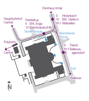 Mit dem Tram gelangen Sie wie folgt zum Polyball: Vom Hauptbahnhof Zürich mit den Linien 6 (Richtung Zoo) und 10 (Richtung Bahnhof Oerlikon) und vom Bellevue mit der Linie 9 (Richtung Hirzenbach). Bei allen Linien ist Ihr Zielort die Haltestelle «ETH/Universitätsspital».